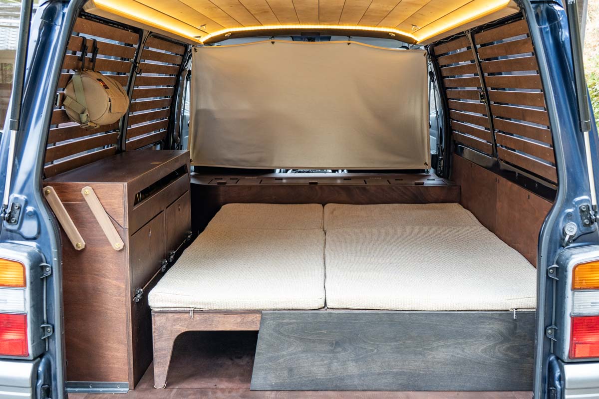 4ナンバー(貨物)登録、二人乗車のバンライフ仕様車です。